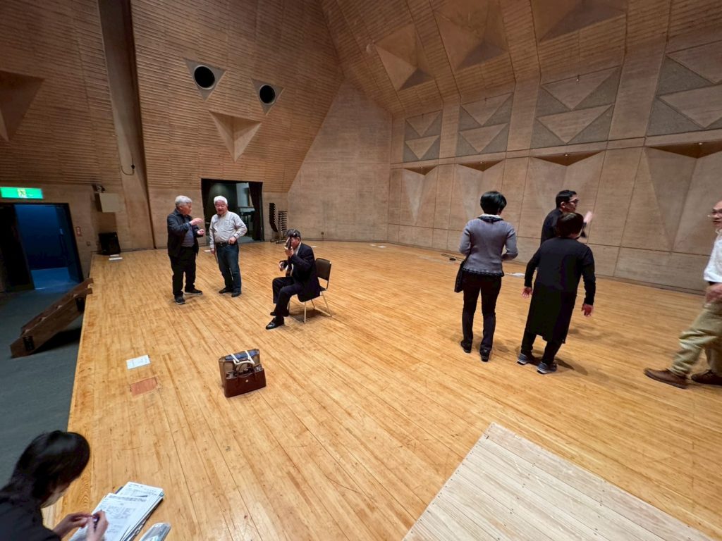 - 師匠が入念に音の確認・・この日はマイクが使用出来ず音のみ確認。