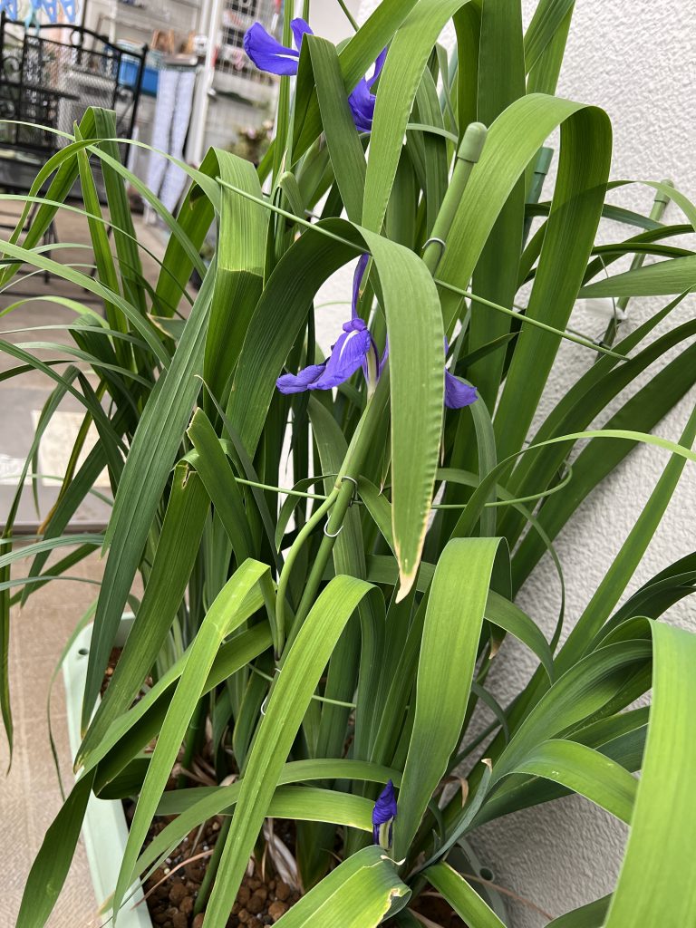 - 放っておいたベランダの菖蒲かなぁ3ケも花が咲きました。