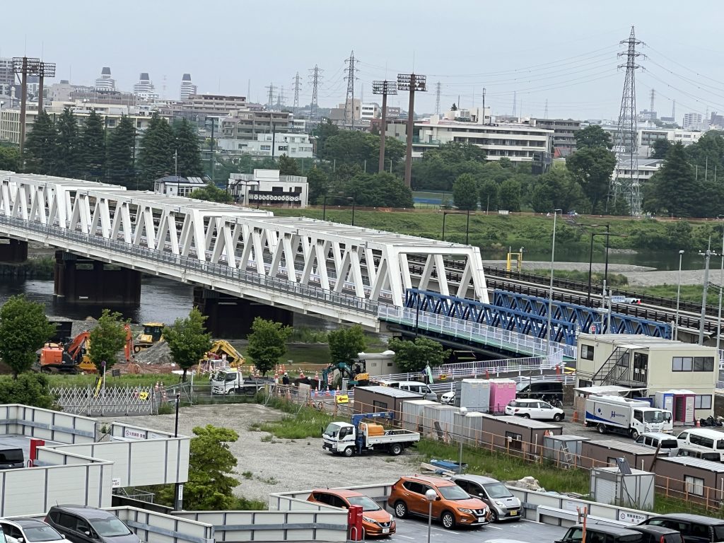 ・何時から通行出来るようになるのかと思って見ていたのですが、知らないうちに日野橋の仮橋が通行になっていました。2025年5月17日(土)昼頃見た時は、もう仮橋は全面通行で、普通に通行して居りました。私は予定があり翌日通行しましたが、やはり新しい橋は仮橋とはいえ綺麗で良かった・・。